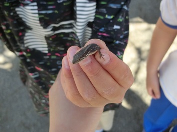 3年生の児童が,「つかまえたよ!」とカナヘビを見せてくれました。草むらや木の根元付近によくいるそうで,この後は教室で観察し,また校庭に逃がすそうです。