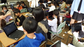 5年生は社会科の学習において「日本の自動車工業」の学習がスタートしました。この日は,トヨタの自動車工場と学校とをオンラインでつなぎ,自動車ができるまでの過程を学びました。