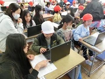 1年生が一人一台端末を初めて使うにあたり,6年生が手伝いに来てくれました。