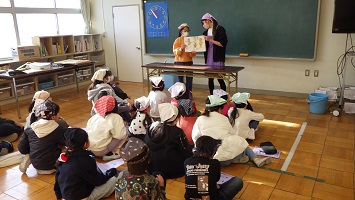 図書委員の児童の児童が読み聞かせを行いました。児童によく聞こえるよう,大きな声で呼んでいました。