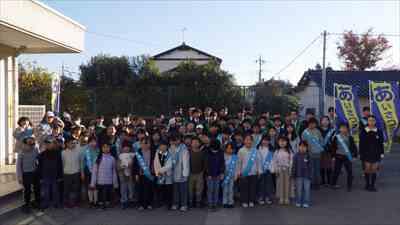 11月21日(金)宮の原中学校の生徒が本校へきてくれて,本校の児童と小中合同挨拶運動を行いました。