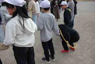 久しぶりに全校生が校庭に集まり,様々なゲームを楽しんでいました。