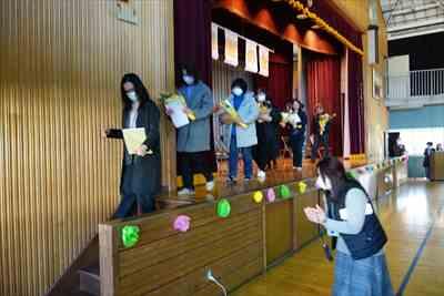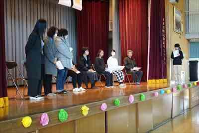 交通指導員の方々に来校していただき,児童が感謝の言葉を呼び掛けたり記念品を渡したりしました。