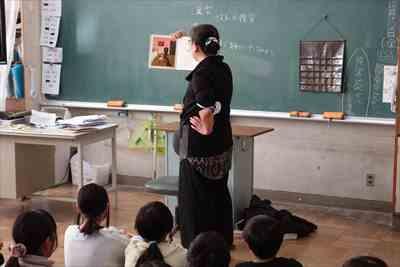 1~3年生は下野民話の会の方の民話語りを聞かせていただきました。