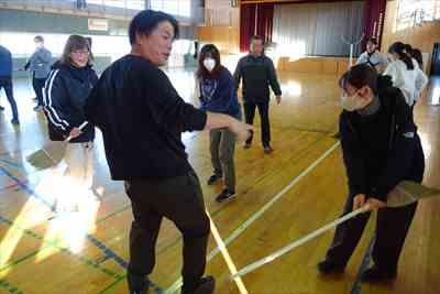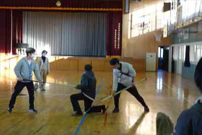 6年生は男体雷太鼓の方たちから和太鼓のたたき方を教えていただきました。