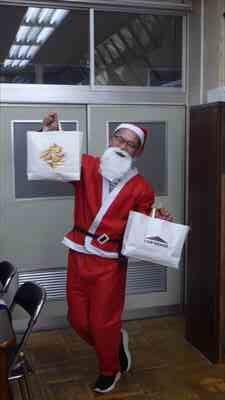 本校敷地内の放課後保育施設「くるみの家」の子供たちへ本校校長先生がサンタになって訪問しました。