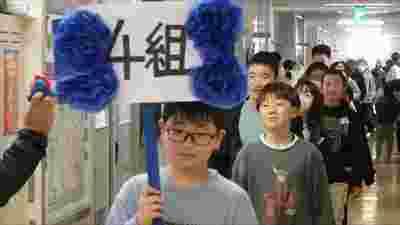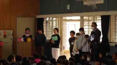 体育館では,各学年が感謝の気持ちを歌や呼びかけで表していました。