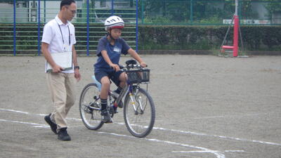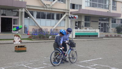 子どもたちは緊張した様子でしたが,前後左右の確認や右折の方法などしっかりと交通ルールを守って走行する姿が見られました。