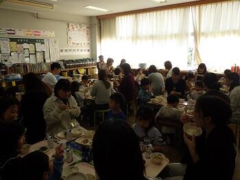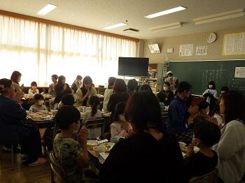 10月23日(木)に,1学年親子ふれあい給食を実施しました。給食の取組についてお聞きいただいた後,お子さんと一緒に給食を味わっていただきました。献立は,「麦入りご飯,もろフライ,磯部あえ,すがとん汁(姿川学校園メニュー♪),牛乳」でした。おうちの方と一緒に食べることを,とっても楽しみにしていた子どもたち。いつも通り,苦手なものに挑戦したり,ご飯粒を残さないようにきれいに食べたりと頑張りました。保護者の皆様には,実施後アンケートにご協力いただきました。「毎日,栄養があって作りたての美味しい給食を楽しく食べていることがよく分かった」「地域メニューなど,様々な食材を食べることができ,ありがたい」「家では食べない野菜を食べていて驚いた。作ってみようと思う」「配膳もみんなで協力し合っていてすばらしい」などたくさんのご意見をいただき,ありがとうございました。身体にも心にも食育は大切ですね。これからも食べ物や作ってくださった方に感謝しながら,マナーよく,美味しく食べることができるといいなと思います。