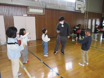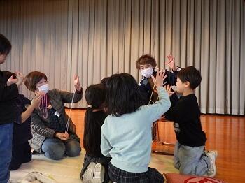 慣れない遊びに,始めは悪戦苦闘の子どもたち。でも,昔遊び名人の方々から,こつや遊び方を丁寧に教えていただき,「できた!」「やったぁ!」などの声がたくさんあがりました。