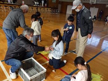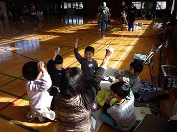 会の後の振り返り活動では,「めい人のかたが,こつをやさしくおしえてくれたので,はじめてできてうれしかったです。」「もっとれんしゅうして,じょうずになりたいです。」等の意見があがりました。
