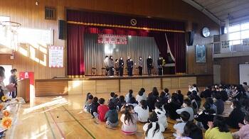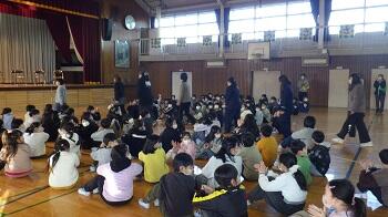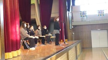 1月19日(月)に,つくし保育園年長組のみなさんを招待し,小学校のことを紹介する活動を行いました。入学したころの気持ちを振り返り,新しい1年生にどんなことを,どのように伝えるといいかよく話し合いました。めがね山や大きなプール,遠足などの行事,学習などについて一生懸命練習し紹介することができました。音楽の授業で学んだじゃんけん列車を一緒に行った際には,保育園生に合わせてゆっくり歩いたり,笑顔で拍手をしたりする様子が見られました。相手を思う優しい言動に成長を感じました。