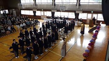 校庭の河津桜や花壇の花々が彩豊かに咲く中,宇都宮市教育委員会並びに市議会議長様を始め,多くのご来賓の方々をお招きし,素晴らしい式となりました。6年生は,これまでに培ってきた自信と中学生になるというしっかりとした意思をもち,立派な態度で式に臨んでいました。