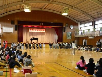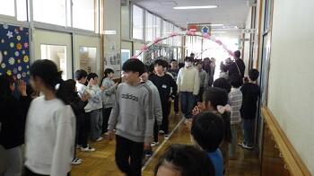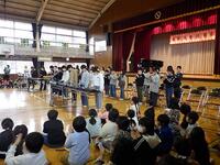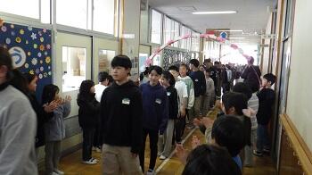6年生からは合奏と合唱のお返しを贈り,下級生に囲まれて拍手で会場を後にしました。