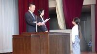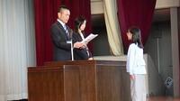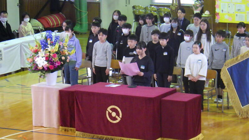 3月24日(火),令和7年度の修了式が行われました。それぞれの学年の代表児童が校長先生より修了証をいただきました。5年生の代表児童が,この一年を振り返り,作文を発表しました。最後まであきらめずに頑張ることの大切さに気付いた経験を堂々と発表し,大きな拍手をもらいました。