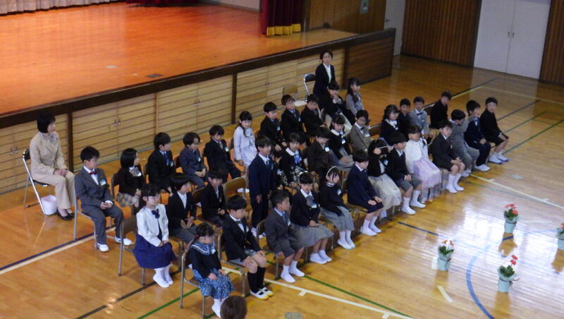 新しい友達や初めて入る教室に緊張している様子でしたが,担任の先生とあいさつをしたあとには,安心をして,笑顔が見られるようになりました。入学式では,6年生の代表児童がお迎えの言葉を伝えるなど,温かい雰囲気で新入生を迎えていました。小学校生活の,いいスタートを切ることができた様子でした。