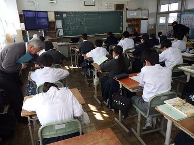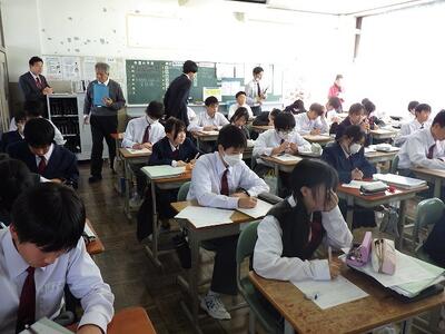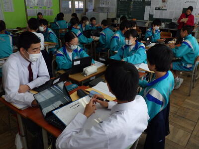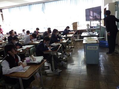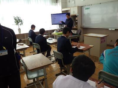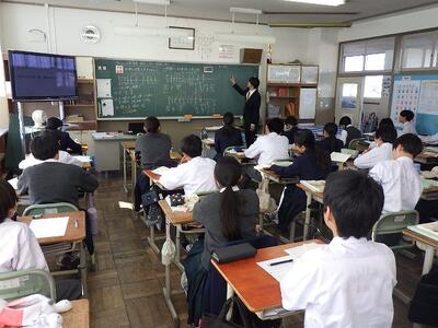 19日の5時間目。市教育委員会の指導主事の先生をお迎えして、1年生の数学の授業を参観していただき、授業改善のご指導をいただきました。