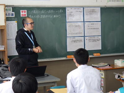 本日は3時間目に2年生の社会で「江戸幕府の滅亡」の授業を公開しました。