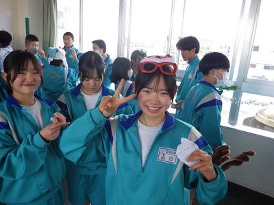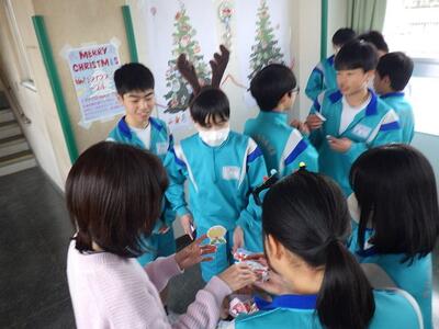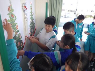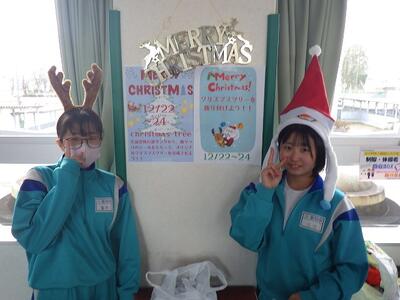 本日12月23日の昼休みに、生徒会執行部によるクリスマスイベントが行われました。クリスマス衣装を身に付けた執行部員からオーナメントをもらい、クリスマスツリーを飾り付けました。24日(水)も続きます!