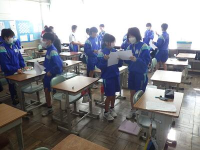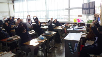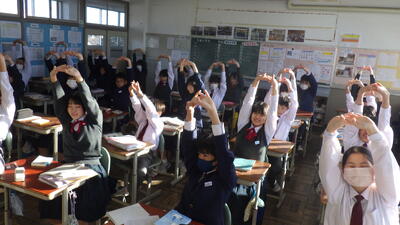 12月9日(火)から始まった保健委員会による「良い姿勢強化週間」が最終日を迎え、今朝の読書の終わりに「姿勢体操」を行いました。みんな気持ちの良い朝を迎えました。これからも続けていきましょう!