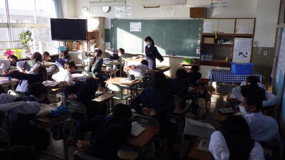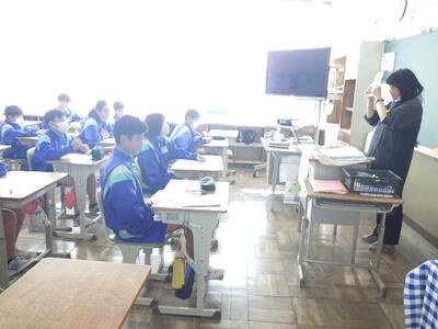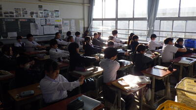 12月15日(月)は4時間目に1年国語で「写真の説明文 根拠を明確にして書こう」の授業を公開しました。