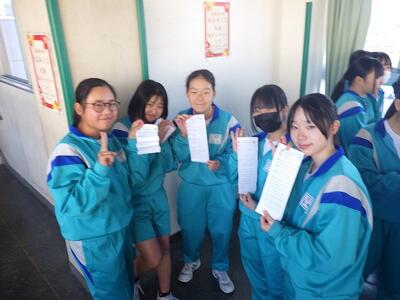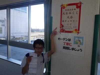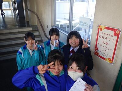 1月13日(火)、昼休み、生徒会執行部が中心となり「大おみくじ大会」を企画しました。昨年末に、生徒会員の皆さんに呼び掛けて、作成してもらったくじをみんなでひくことで、今年の運勢を占いました。内容は、「運勢」「勉強運」「金運」「友達運」「恋愛運」「ラッキーアイテム」「ラッキーカラー」など多岐にわたりました。