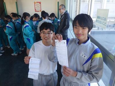 1月8日(木)、登校初日は1,2年生は実力テスト、3年生は通常授業を行いました。3年生は冬休み中、多くの生徒が私立高校の受験などを行い、これまで学んできたことの精一杯を発揮したと思います。2年生は1年後、2年生は2年後に同じように受験をすることをイメージすると、冬休みの過ごし方が大切になってくることを想像できるのではないでしょうか。