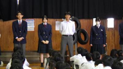 10月22日(水)3つの学年で学年朝会を行いました。2学期が始まってから1週間が経ち、新しい学級委員が自分らしさを発揮して学級づくりを進めています。本日の学年朝会では、学級委員がより良い学級づくりのための抱負を発表しました。
