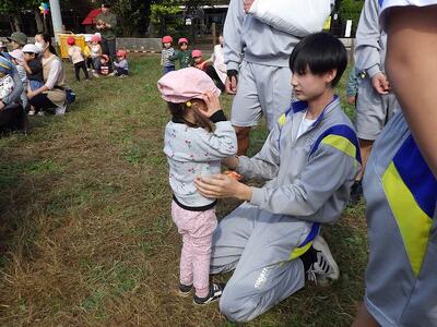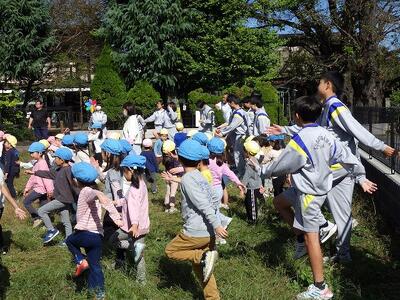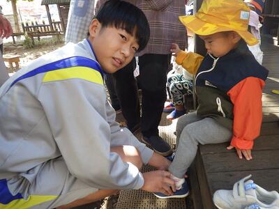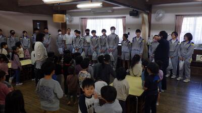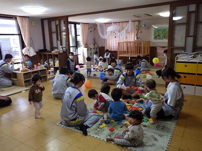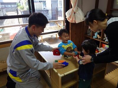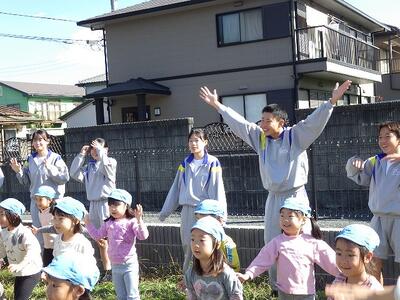 天気にも恵まれ、活発に外遊びをしたり、室内でも楽しく遊ぶことができました。さすがは3年生、約1時間の実習でしたが、はじめから保育園児となじんでとても充実していました。