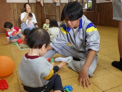 10月23日(木)、本校3年5組の生徒が、家庭科の保育実習のためにつくし保育園に出かけました。