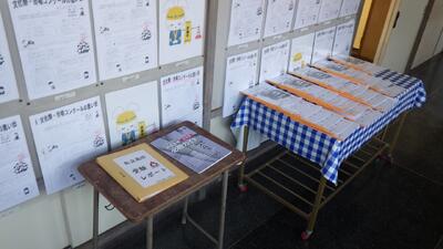 *廊下アート「ようこそ姿川中へ」:南校舎東1階階段をご覧ください。