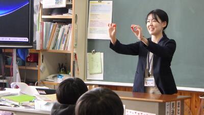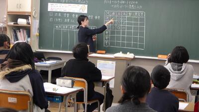 11月26日(水)本校の教員が、地域学校園内の小学校を訪問して、6年生のクラスで授業を行いました。