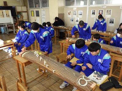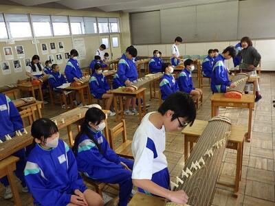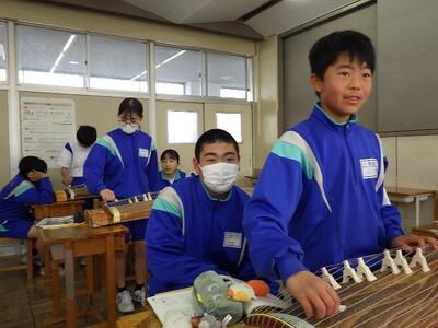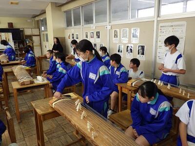 1年生が音楽の授業で箏を爪弾き(つまびき)ました。
