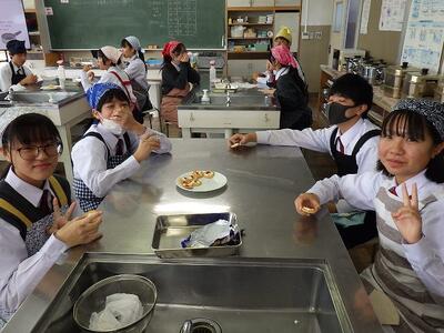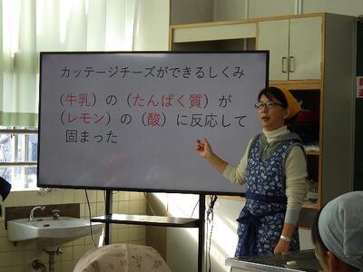 本日は1時間目に2年生家庭科で「栄養素の働き(カッテージチーズを作ろう)」の授業を公開しました。