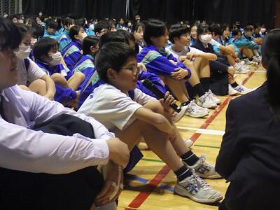 4つのテーマ「姿川地区の自然を保つために一人一人ができること」「中学生が地域で関われるボランティア」「姿川地区の良さを知ってもらう」「ポイ捨てを減らすために出来ること」について話し合いを行いましたが、今日がスタートです。話し合いから出てきたことをヒントに、地域の一員として、姿川中学校のリーダーとして姿川地区の未来の担い手としての自覚を高め、姿中生が目指すべき姿を示してほしいと思います。