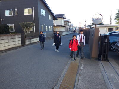 1月14日(水)登校指導が行われました。冬休みが明けて寒い毎日が続いていますが、生徒の交通マナーを守る努力と地域を通行している方々の思いやりのおかげで事故の無い日を送ることができています。