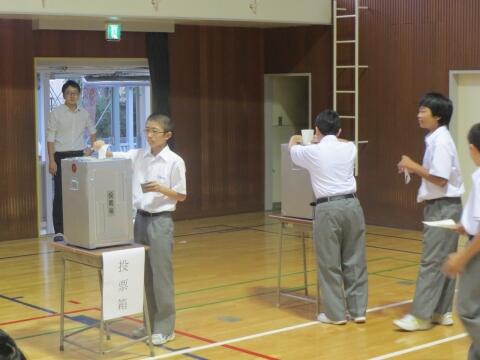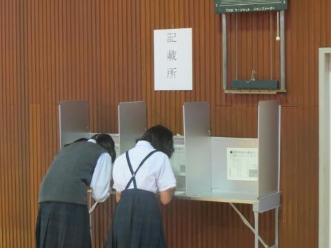 ・今日は、投票日でした。生徒は、昨日の演説会を参考に、思い思いの候補者へ投票しました。なお、記載台と投票箱は、宇都宮市からお借りしたものです。