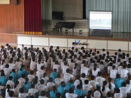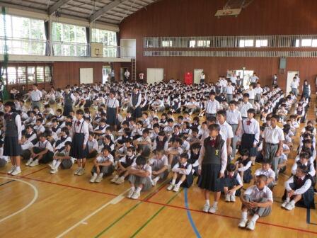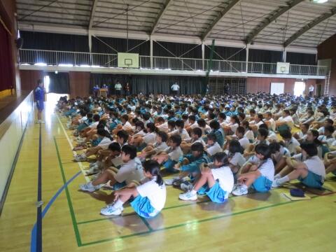 ・夏休みを前に、全校集会が開かれました。充実した生活になることを期待しています。