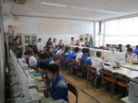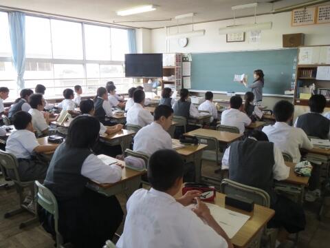 ・本日は、小中一貫教育の研究授業が行われ、地域の小学校の先生が参観のために訪問されました。生徒たちは真剣に、楽しく授業を行っていました。