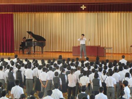 ・『音楽鑑賞会』として、ジャズコンサートが行われました。5人のプロの演奏や話術に、生徒たちは十分ジャズの魅力に取りつかれていました。