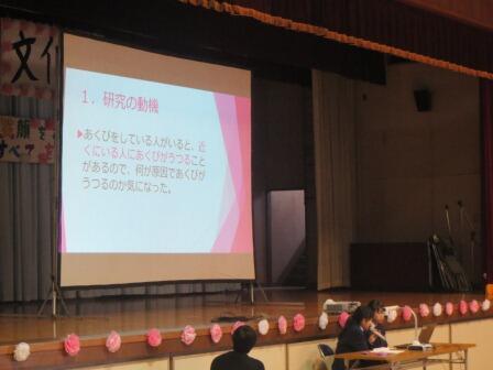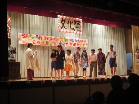 ・平成27年度『文化祭』が開催されました。今年は、校内のみでの開催でしたが、学習発表や吹奏楽部の演奏、各委員会のアトラクション等、盛りだくさんの一日になりました。それぞれの生徒の活躍はすばらしく、多くの保護者の皆様にその姿をお見せすることができました。