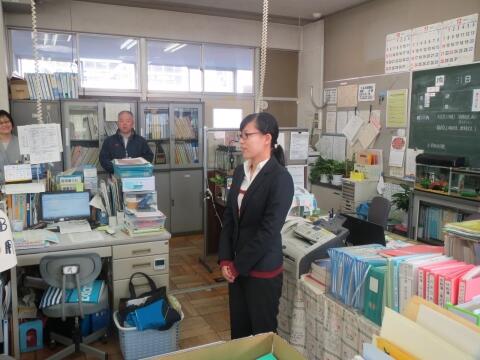 ・本日、第1学年副担任の岡田先生が離任されました。約1年間、多くの生徒に対し、熱心なご指導をいただきました。ありがとうございました。