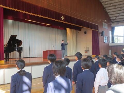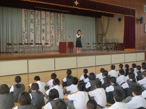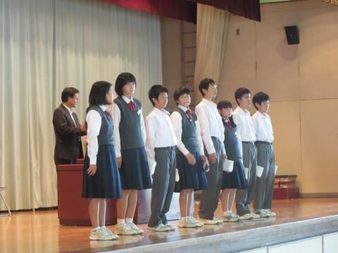 ・学年朝会が行われました。1年生は、清掃コンクール等の表彰がありました。2年生は各学級の学級委員から反省が述べられました。