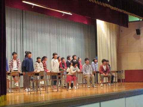 ・姿川中学校演劇部の皆さんによる、『演劇』を鑑賞しました。演劇部は、宇都宮ジュニア芸術祭において、『ジュニア芸術祭賞』を獲得し、県の演劇祭へ出場が決まっています。この日も、全生徒が引き込まれる程の素晴らしい演技でした。劇の内容は、『いじめ』をテーマにしたもので、10月の「いじめゼロ運動」の一環としても行われました。