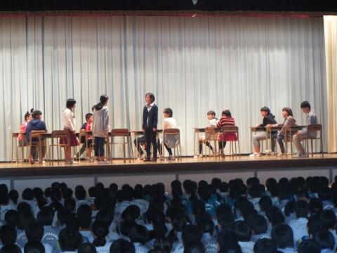 ・全校朝会が行われました。校長先生からは、「既成概念にとらわれずに、いろいろな見方をしていこう」と話がありました。