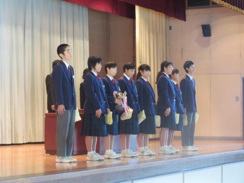 ・給食委員会主催の生徒会朝会でした。委員会で取り組んできた各種コンクール等の表彰を行いました。残菜ゼロに向けての取り組みもあり、充実した活動が行われています。