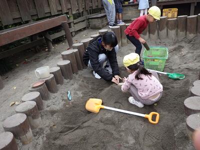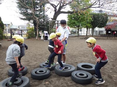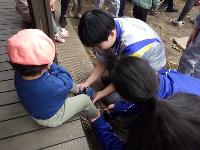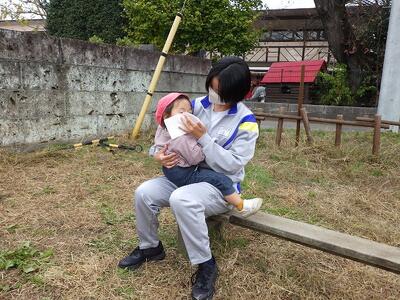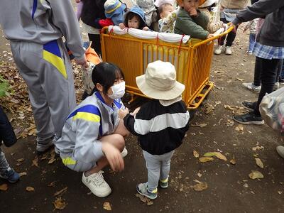 11月13日(木)本校3年4組の生徒が、家庭科の保育実習のためにつくし保育園に出かけました。天気にも恵まれ、活発に外遊びをしたり、室内でも楽しく遊ぶことができました。