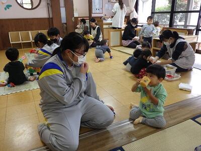 貴重な時間を提供してくださったつくし保育園の職員の皆様、ありがとうございました。この貴重な体験(学び)をこれからの人生に生かしてほしいと願うばかりです。