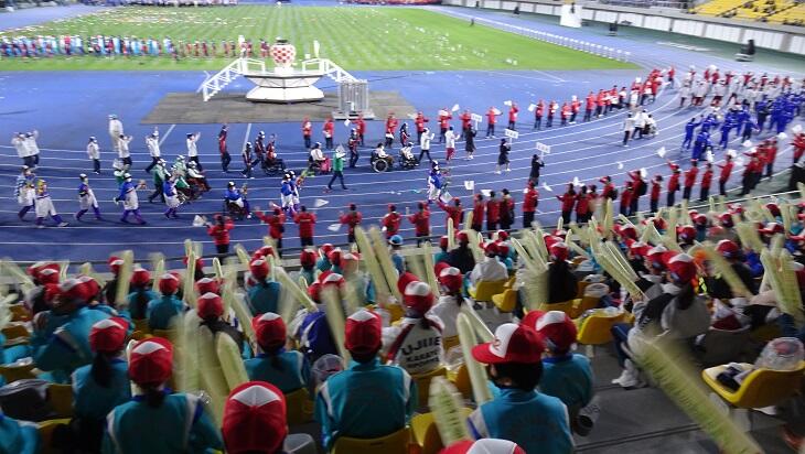 *スローガン「夢を感動へ、感動を未来へ」の下、記念すべき閉会式に参加できたことは一生の思い出になると思います。皆さんのおもてなしの心は確実に届きました。応援お疲れ様でした。この感動を未来へつなげましょう!
