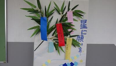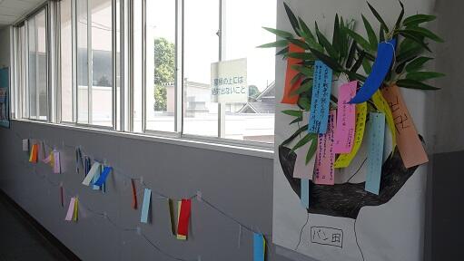7月7日(木)、今日は七夕の日です。東ギャラリーには生徒会執行部の皆さんが制作した七夕や各クラスごとに生徒一人一人の願い事が短冊にて飾られています。
